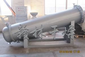 气体通过一根长长的管子(通常盘成螺线管),让热量散失到四周的空气中,铜之类的金属导热性能强,常用于输送蒸气。为提高冷凝器的效率经常在管道上附加热传导性能优异的散热片,加大散热面积,以加速散热,并通过风机加快空气对流,把热量带走。
