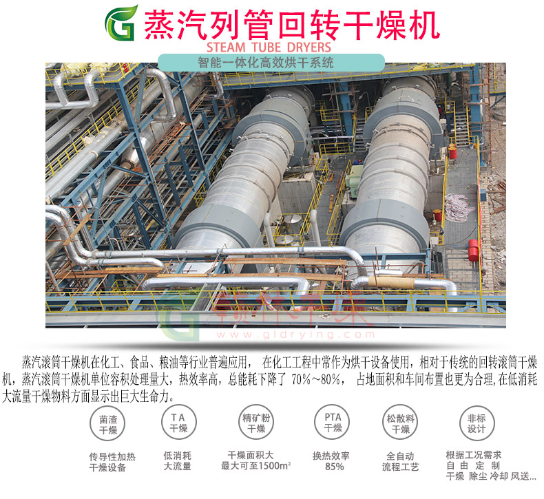 产品关键词:蒸汽干燥,热传导,大产量,回转滚筒干燥机,