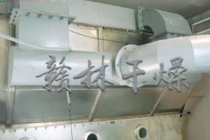 洁净的热风经阀板分配进入床体内,从加料器进入的湿物料被热风形成沸腾状态,由于热风与物料广泛接触,增强了传热传质的过程,因此在较短时间内就可干燥。从床体一头进入,经过几十秒至几分钟沸腾干燥,自动从床体另一头流出,本设备一般进行负压操作。