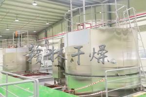 1、 塔径塔高做了相应的调整,既保证物料干燥之前接触不到塔壁,又保证物料在热风中的停留时间;塔壁设有夹套冷风冷却装置,确保物料吸附在塔壁上因局部温度过高而产生软化、熔融甚至焦化现象;锥角增大,锥体上安装空气震击器,用压缩空气脉冲式地震击筒体,把吸附在筒体上的粉料顺畅地击落下来;